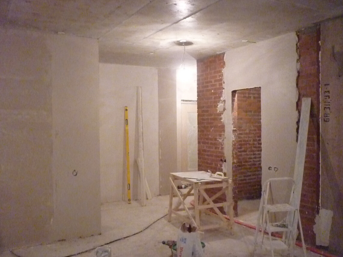 Приступаем к работе,подготавливаем и грунтуем стены, устанавливаем маяки.